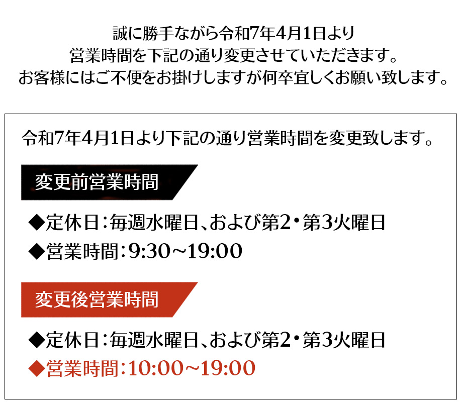 営業時間変更のお知らせ。